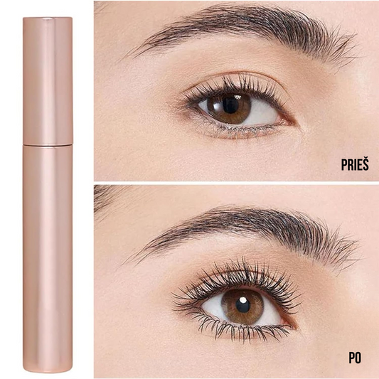Vandeniui atsparus, nepaliekantis dėmių ir ilgai išliekantis blakstienų tušas.