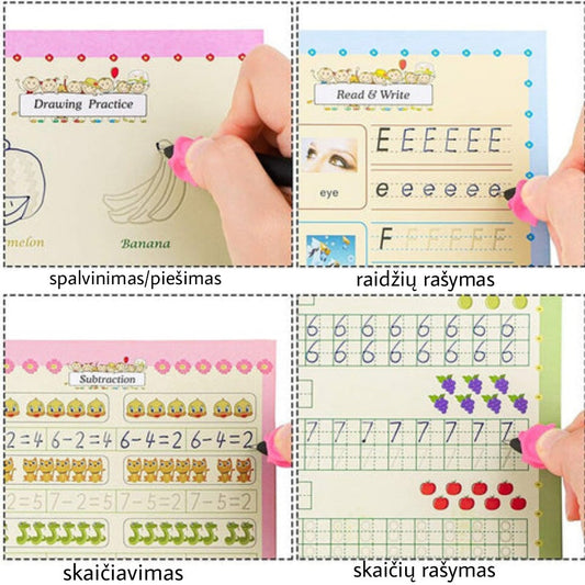 "Magic Practice Books" daugkartinis pratybų rinkinys vaikams (nuo 3+ amžiaus)