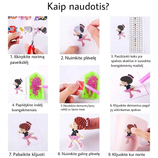 "DIAMOND PAINTING" kūrybinis lipdukų rinkinys vaikams (24 vnt.)