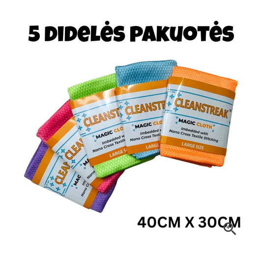"Cleanstreak" valymo šluostės - daugkartinio naudojimo (5 pakuotės)