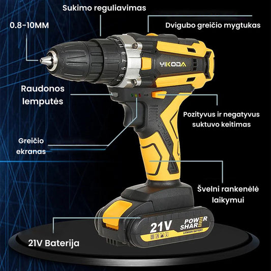 YIKODA™ Profesionalus elektrinis suktuvas-gręžtuvas (rinkinys)