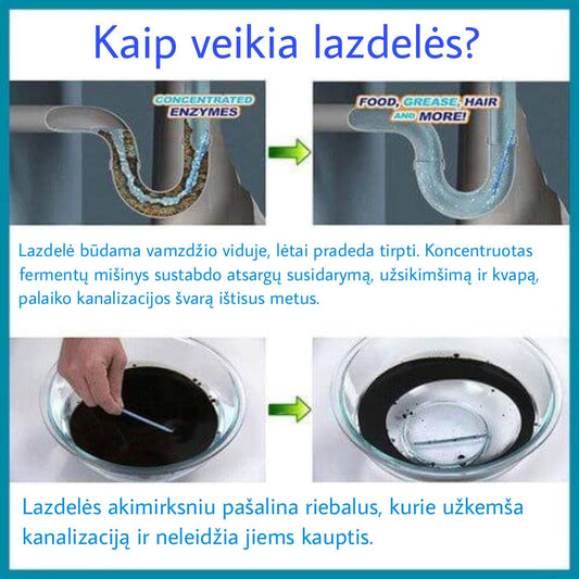 Galingos nuotekų vamzdžių valymo "Cleaner Sticks" lazdelės (12 vnt.)
