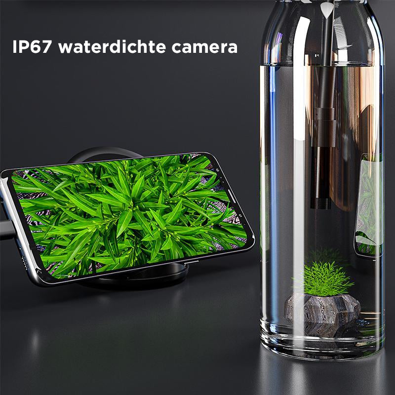 - Vandeniui atsparus endoskopas IP67. Siekiant geresnio vaizdo yra įmontuoti, net 6 reguliuojami šviesos diodai. Prietaisas pritaikytas dirbti tamsiu paros metu;