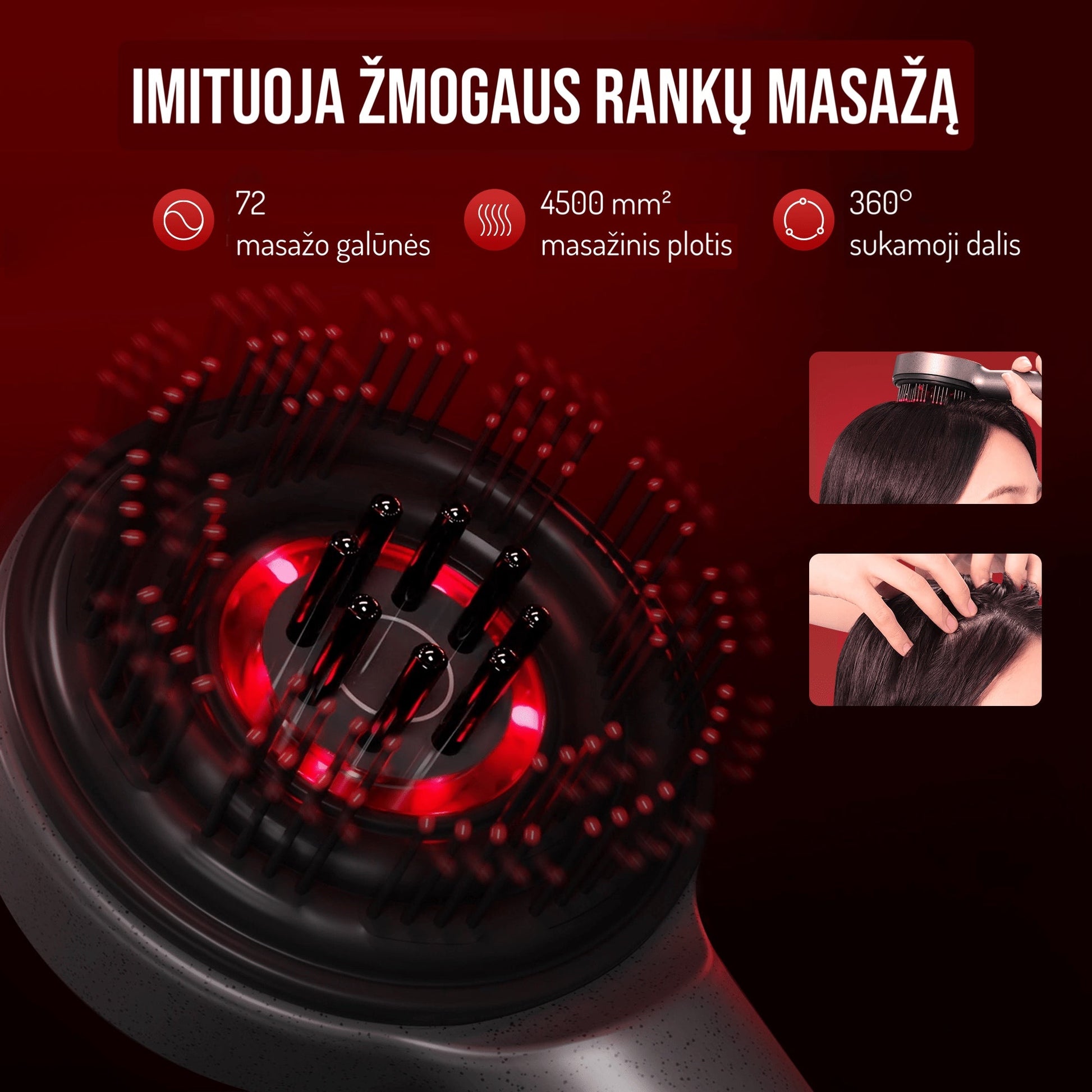 72 masažiniai šereliai su 360° sukimosi masažu atkartoja rankų judesius, suteikdami gilaus ir atpalaiduojančio masažo patirtį 🌸. Pasirinkite vieną iš 3 režimų – raminantis, gaivinantis arba atpalaiduojantis – ir mėgaukitės galvos odos SPA bet kada 🧘♀️.