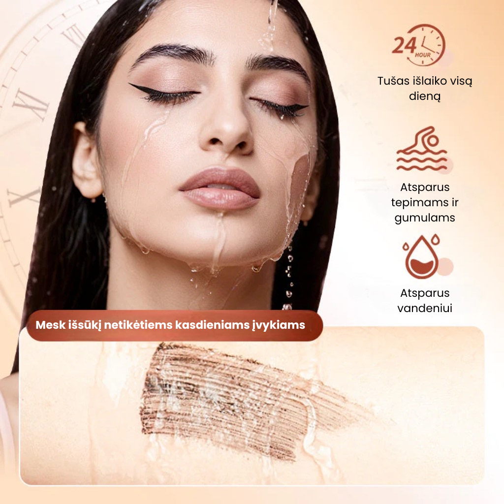 Ilginamasis vandeniui atsparus tušas – praturtintas fibromis, suteikiantis intensyvų užrietimą ir natūralų efektą be gumulėlių 💄👁️