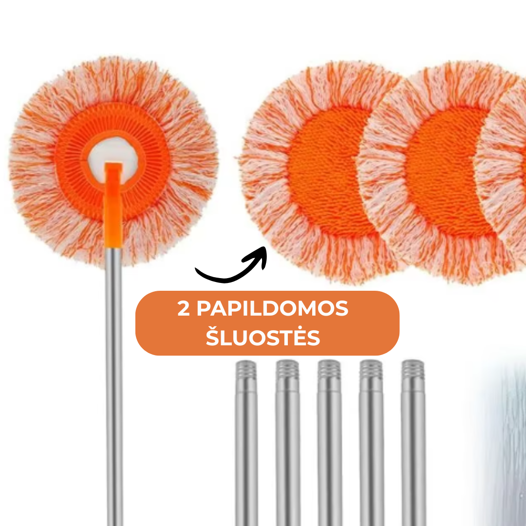 Ši speciali mikropluošto šluota turi 360º pasukamą galvutę ir teleskopinį kotą, leidžiantį pasiekti visus kampelius be nuovargio. Ji puikiai surenka nešvarumus tiek sausai, tiek drėgnai.