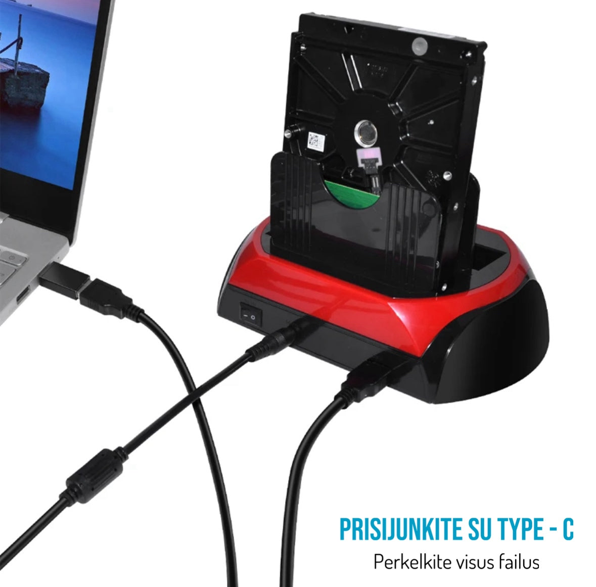 Dvigubo kietojo disko prijungimo stotelė kietajam (-iesiems) diskui (-ams) skaityti ir rašyti (prijungti ir naudoti, tvarkyklių nereikia)