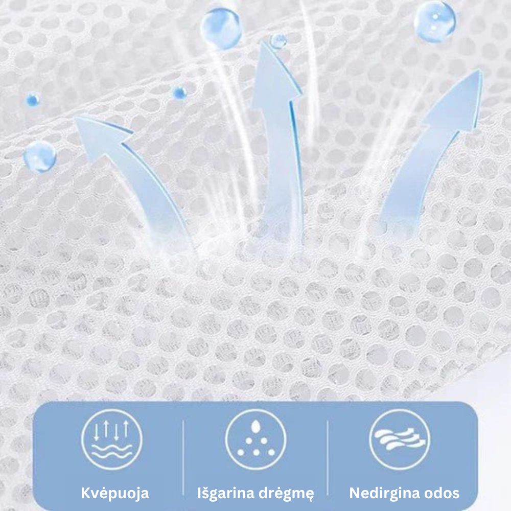 Nešyklė pagaminta iš 3D kvėpuojančio tinklelio, todėl yra patogi, lengva, vėsinanti ir puikiai išgarinanti susikaupusią drėgmę ir tinka visiems sezonams.