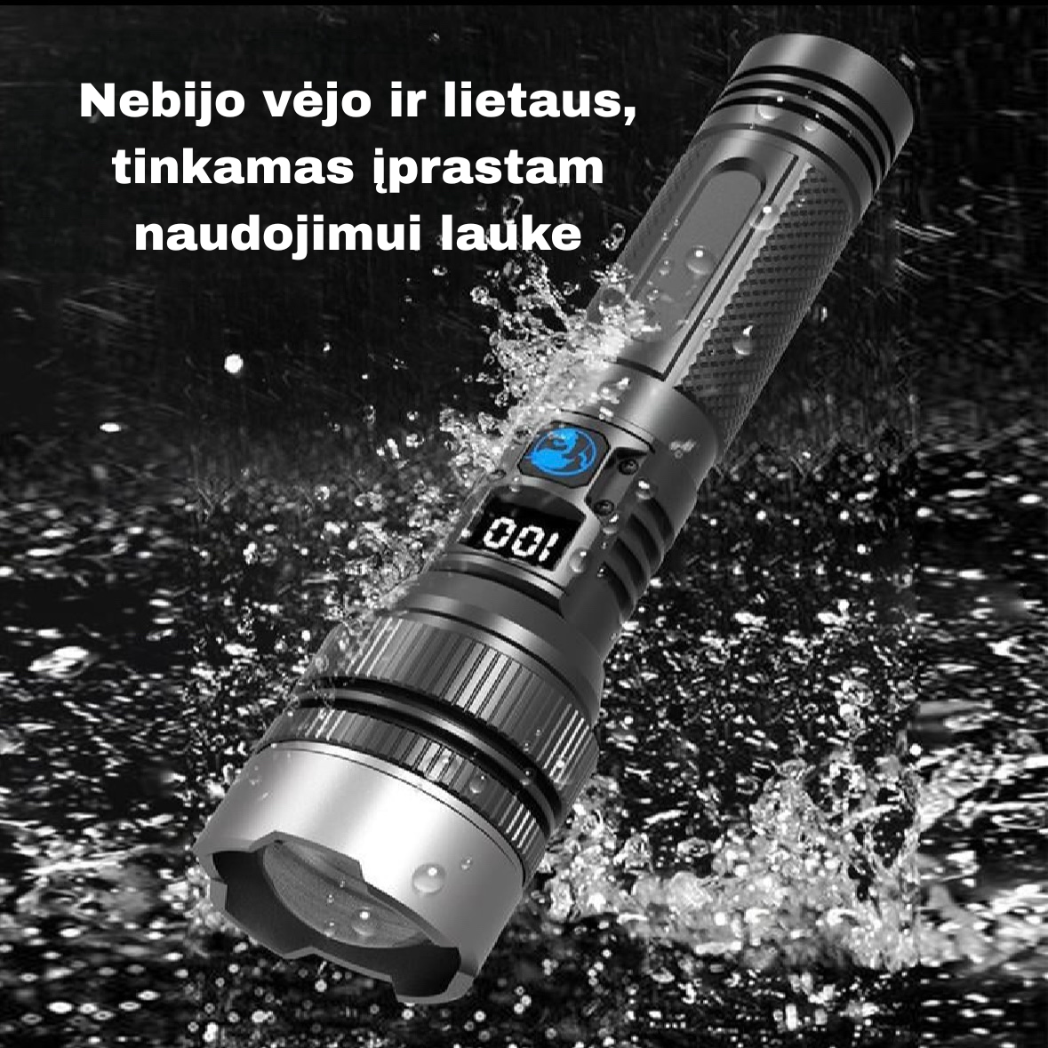 💯PATVARUS IR ATSPARUS ORO SĄLYGOMS – Sukurtas atlaikyti lietų, sniegą ir smūgius. Tvirtas aliuminio korpusas išlaiko kritimus iki 3 metrų ir atsparus trumpam panardinimui į vandenį. Puikiai tinka naudoti lauke ar kasdienėms ekstremalioms situacijoms.
