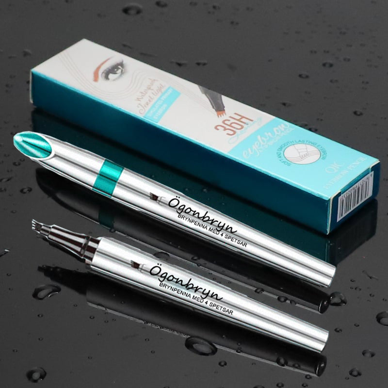 4- galis dizainas - Pieštukas vienu brūkštelėjimu sukuria 4 mikro linijas, imituojančias tikrus antakių plaukelius, užpildo plikutes ir suteikia natūralų efektą. Minkšta, lanksčia galvute galima lengvai formuoti plunksnišką struktūrą, kad antakiai atrodytų subtilūs, o ne per tvirti.